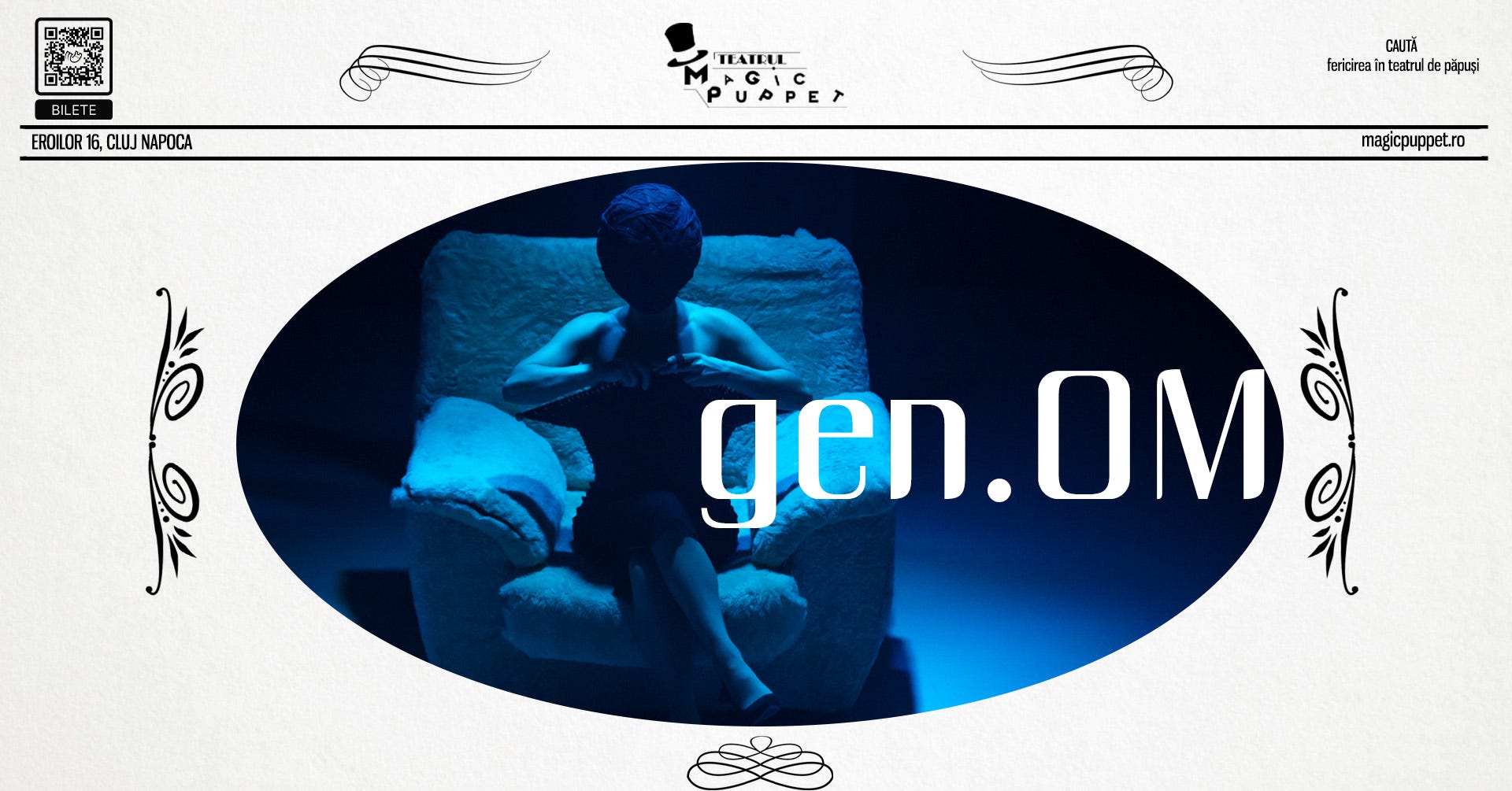 🎭 gen.OM | 18+ (cu bilet) de la ora 19:00 la Teatrul Magic Puppet. E important să chestionăm lumea din jurul nostru, să ne întrebăm de ce lucrurile se întâmplă într-un anumit fel. Gen.OM este un spectacol de animație destinat adulților, care își propune o incursiune plină de umor printre câteva dintre manifestările patriarhatului în societatea contemporană. De: Ana Cucu Popescu, regia: Delia Gavlițchi. Cu: Andreea Ajtai, Florin Suciu, Oana Tămaș, Viktor Hegedüs.