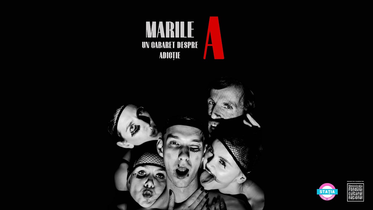 🎭 Marile A - un cabaret despre adicție (cu bilet) de la ora 20:00 la Stația Teatru/ Muzical. MC Pasiune, cunoscut fanilor din Marele B – cabaretul despre burnout, are acum probleme mari cu consumul de substanțe. Mai ales cu ceva foarte nasol numit SPER – sperăm că nici n-ați auzit de el. Așa că are nevoie (din familie, din bloc, din partea statului, din mare) de un Salvator sau o Salvatoare. Cine credeți că va fi, oare?